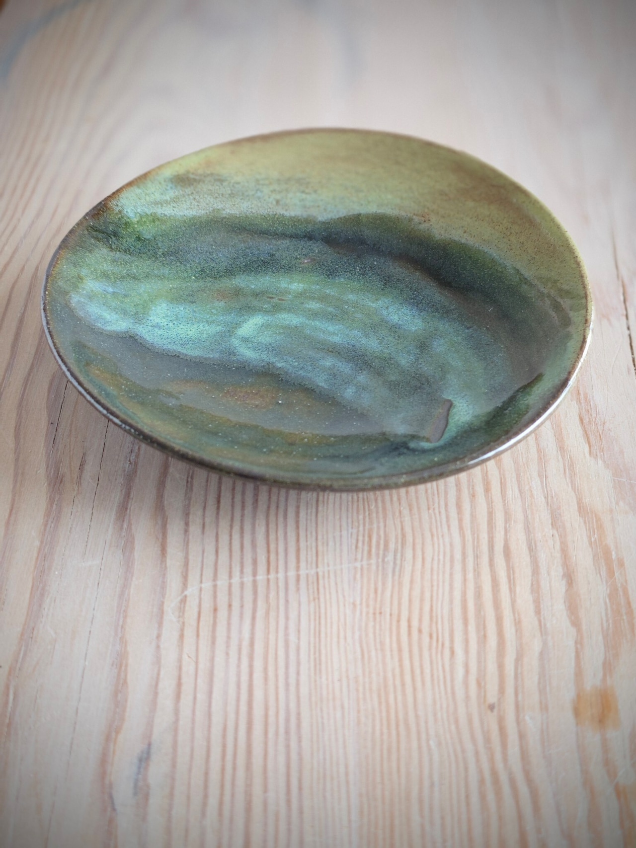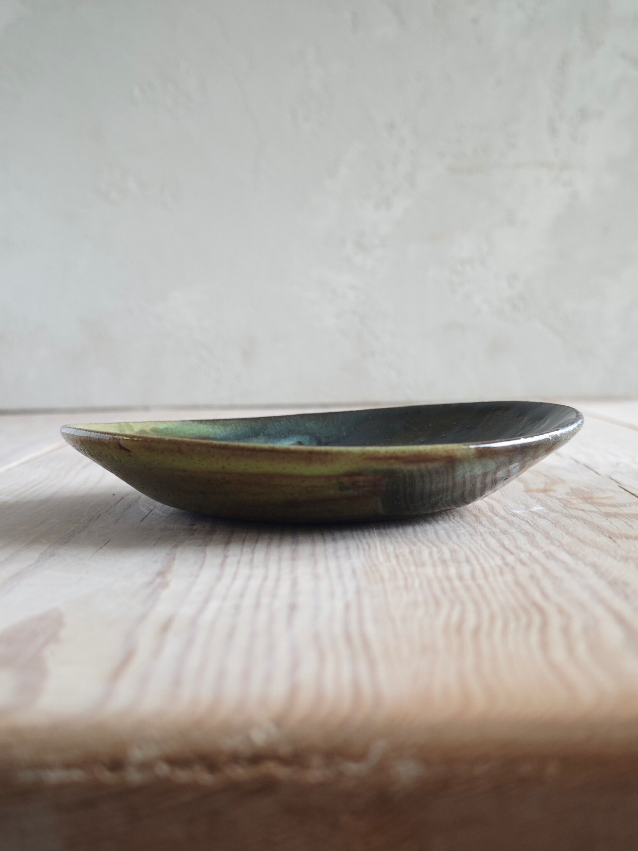 美しい織部の色を中心に、色んな緑色が混ざった独特な色合いの小皿に仕上げました。デザートやおつまみ、お料理の盛り付け、調味料など、様々な用途に使えます。