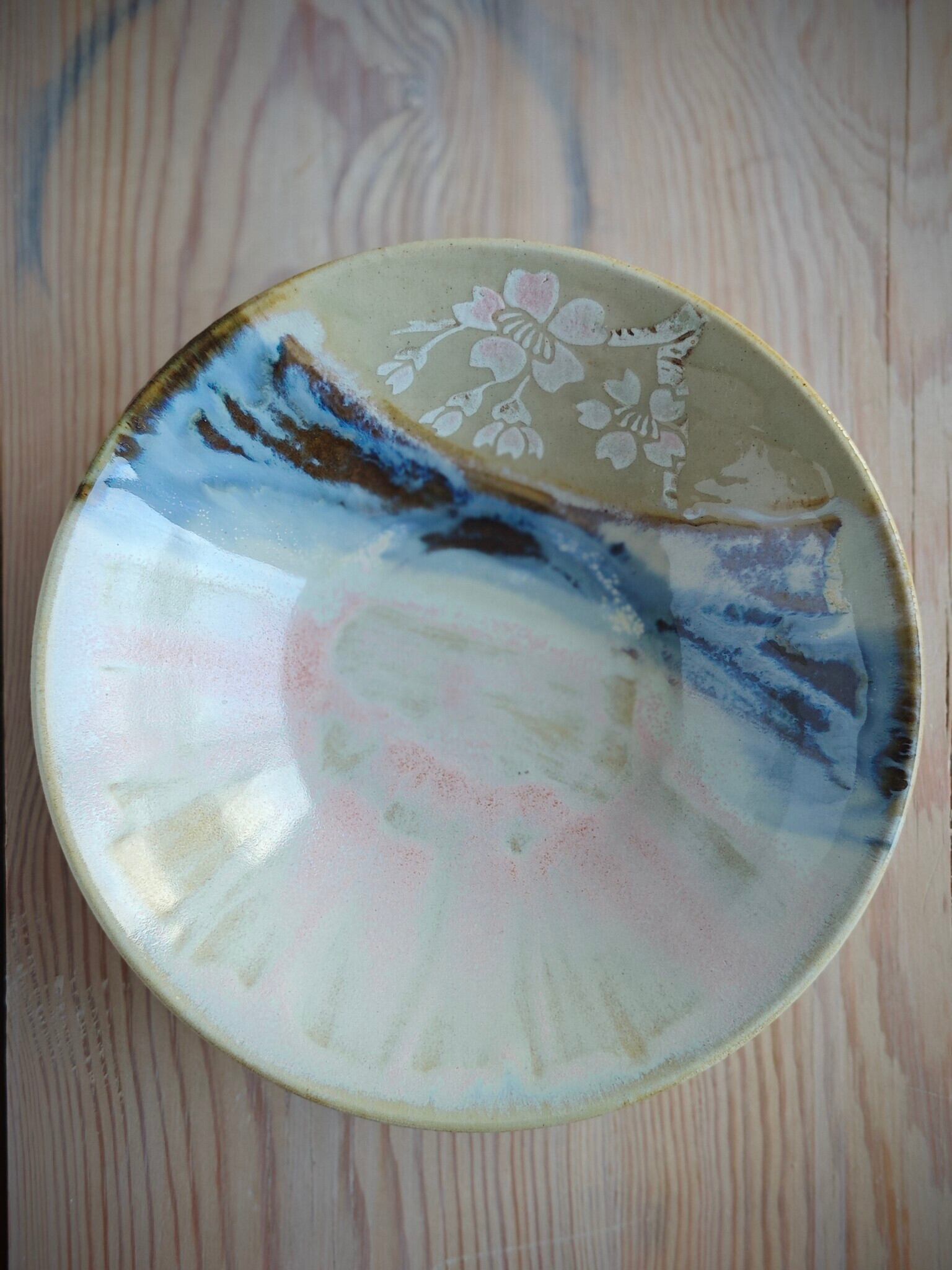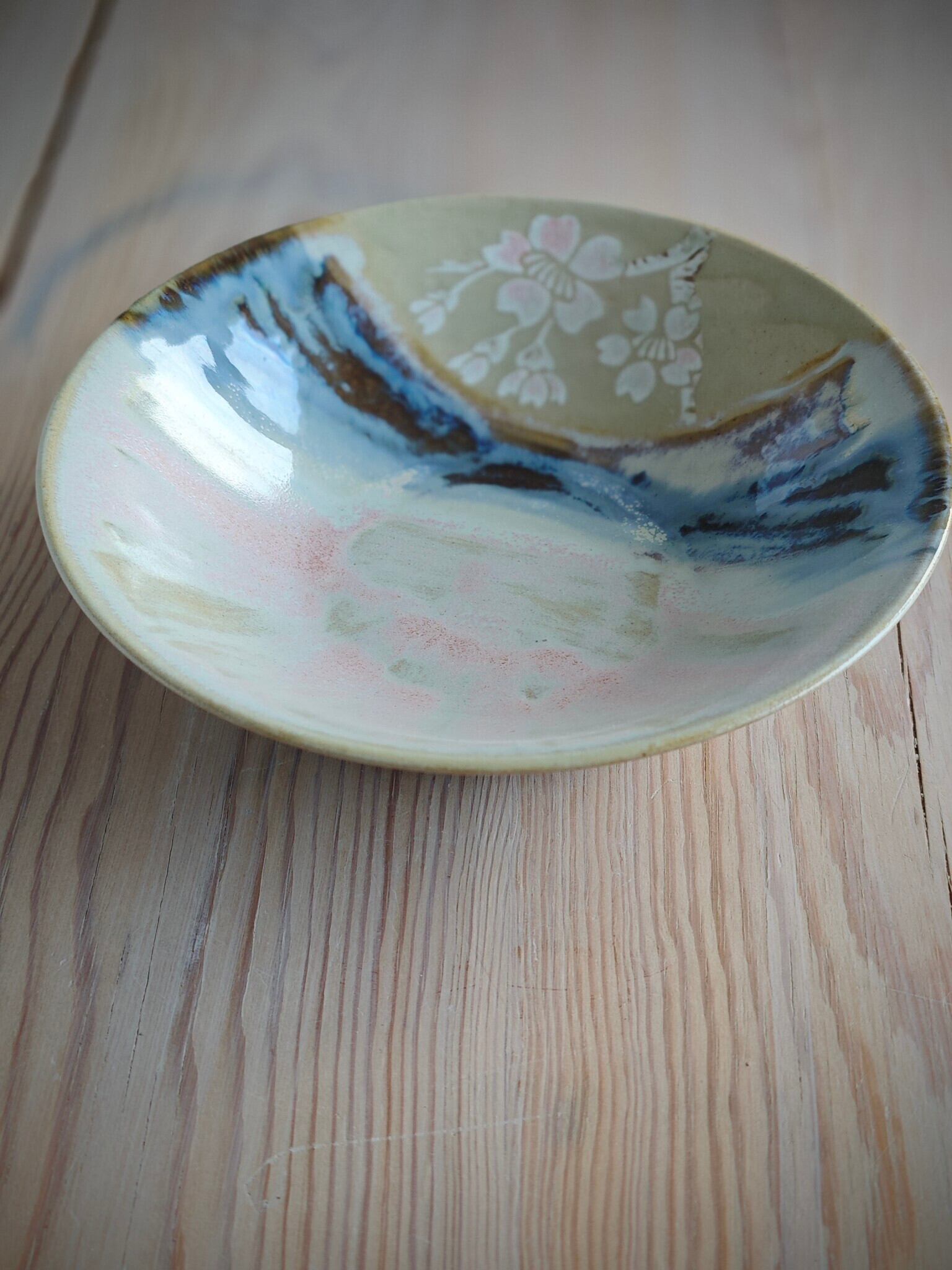 桜の絵が特徴の、インクと青色の小皿です。デザートやおつまみ、お料理の盛り付け、調味料など、様々な用途に使えます。