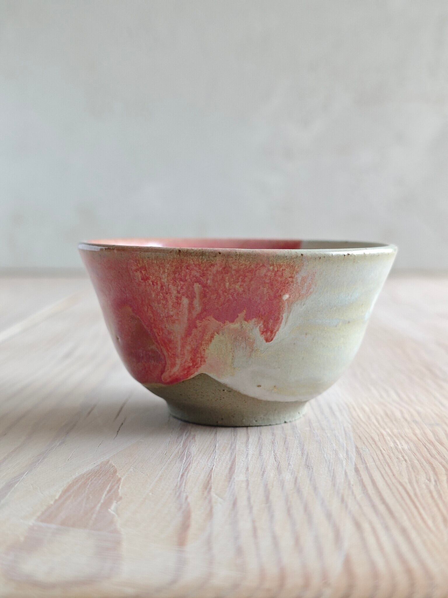 鮮やかなもの、繊細でシンプルなもの、全てが一点物の色合いが特徴的なコップです。丁寧な手仕事で作られた美しいデザインは、食卓を彩ります。 光沢、マット調の両タイプの釉薬を使用し、作者の世界観を表現しています。