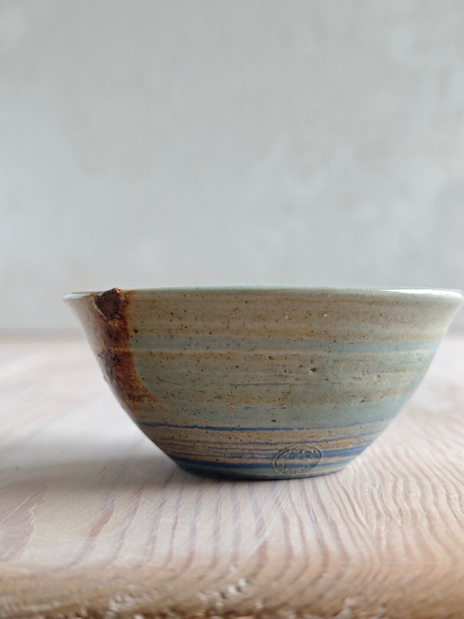 全てが一点物の、練り上げ技法を用いた色合いが特徴的なコップです。丁寧な手仕事で作られた美しいデザインは、食卓を彩ります。 光沢、マット調の両タイプの釉薬を使用し、作者の世界観を表現しています。